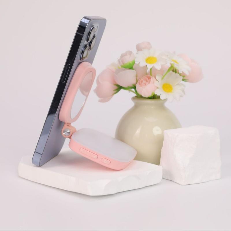 Obtenez un éclairage parfait à tout moment grâce à cette lampe de remplissage LED magnétique 2-en-1 pour selfie, conçue pour les smartphones et la photographie en déplacement. Les billes LED de haute qualité fournissent un éclairage doux et uniforme qui améliore les selfies, les portraits et les appels vidéo dans les environnements à faible luminosité. Grâce à sa fixation magnétique intelligente, la lampe se fixe solidement à votre appareil pour une utilisation mains libres, tandis que le miroir de maquillage intégré vous permet de faire des retouches rapides avant de filmer ou de prendre des photos. Avec une batterie rechargeable intégrée et un design compact de 149 g, cet accessoire d'éclairage portable est idéal pour les voyages, le vlogging, le livestreaming et la photographie mobile de tous les jours.
