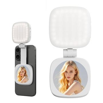 Obtenez un éclairage parfait à tout moment grâce à cette lampe de remplissage LED magnétique 2-en-1 pour selfie, conçue pour les smartphones et la photographie en déplacement. Les billes LED de haute qualité fournissent un éclairage doux et uniforme qui améliore les selfies, les portraits et les appels vidéo dans les environnements à faible luminosité. Grâce à sa fixation magnétique intelligente, la lampe se fixe solidement à votre appareil pour une utilisation mains libres, tandis que le miroir de maquillage intégré vous permet de faire des retouches rapides avant de filmer ou de prendre des photos. Avec une batterie rechargeable intégrée et un design compact de 149 g, cet accessoire d'éclairage portable est idéal pour les voyages, le vlogging, le livestreaming et la photographie mobile de tous les jours.