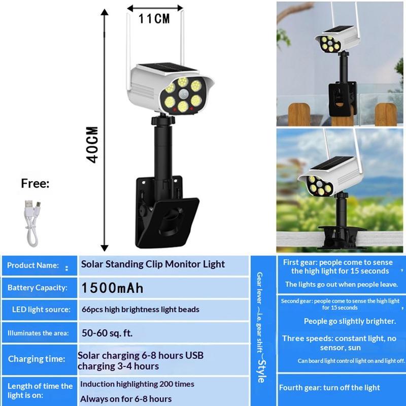 • Lampe solaire à détecteur de mouvement P43 avec caméra de sécurité factice - Lampe de jardin LED d'extérieur étanche IP44 avec fixation à pince