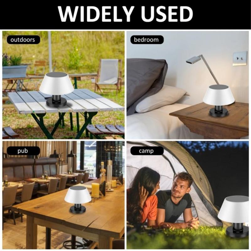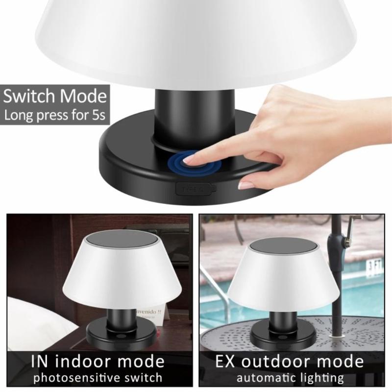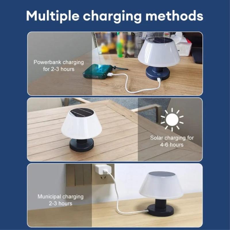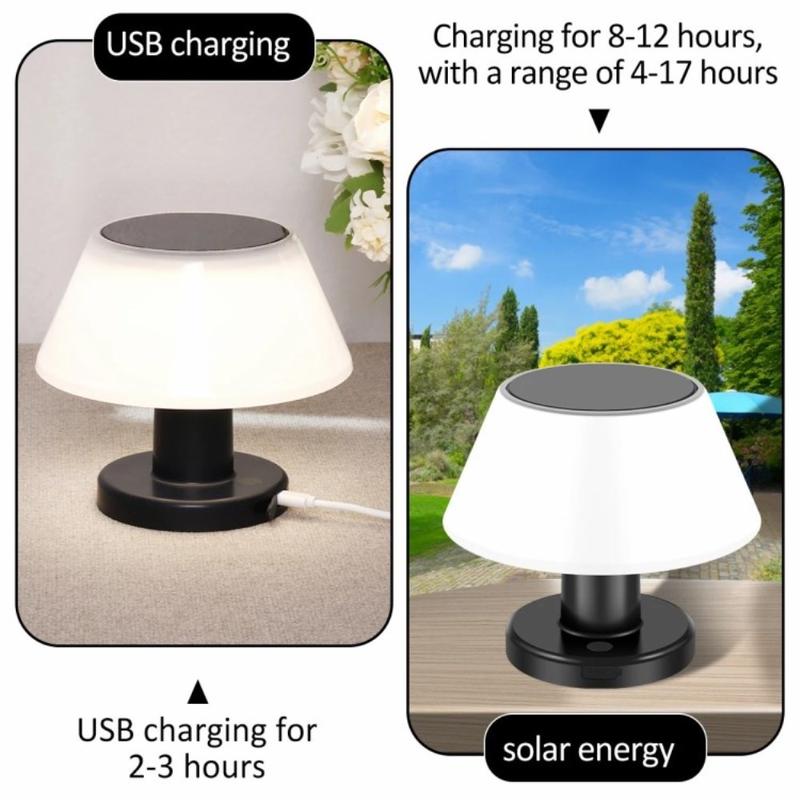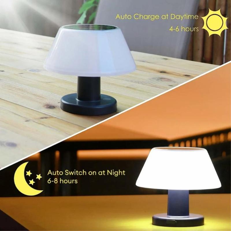 Lampe solaire de table polyvalente pour l'intérieur et l'extérieur, fabriquée en ABS + PC durables, dotée d'un contrôle intelligent de l'obscurité à l'aube, d'une batterie haute capacité de 2200 mAh et de quatre réglages de gradation, le tout dans un design compact et sans câble qui s'adapte à tous les styles de vie.