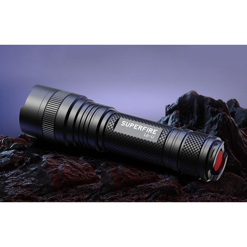 Lampe torche haute puissance Superfire L6-U avec batterie rechargeable USB-C et cinq modes d'éclairage, 1480 lumens