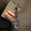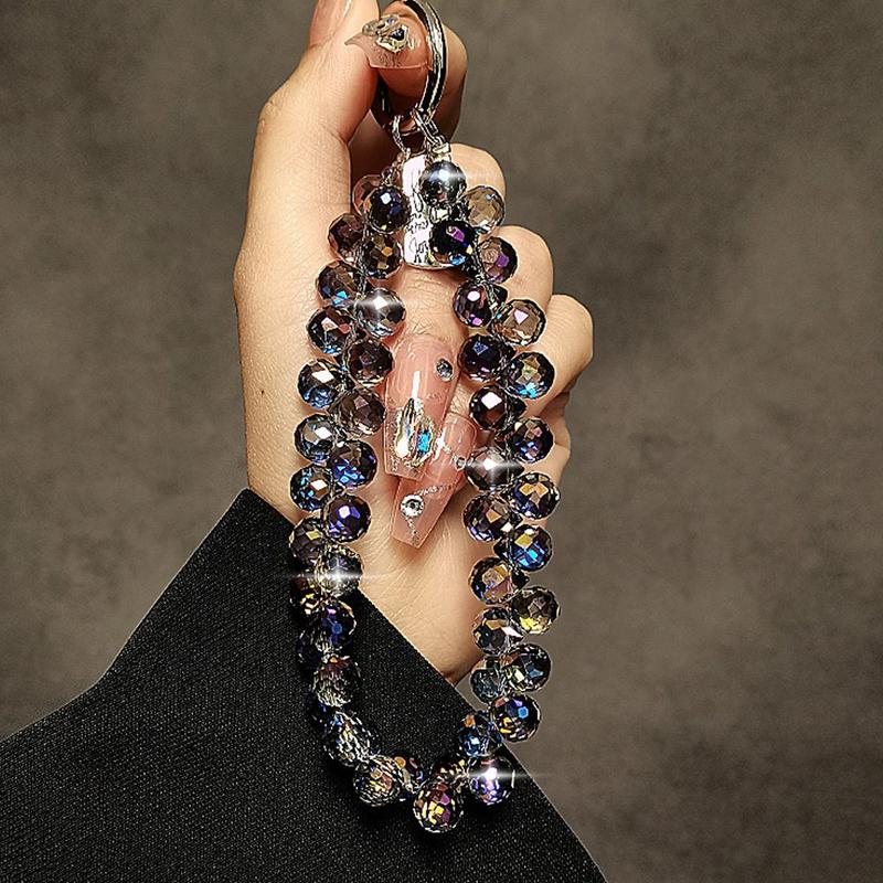 • Chaîne pour téléphone portable avec perles en cristal de 14cm - Lanière de poignet et porte-clés avec languette transparente