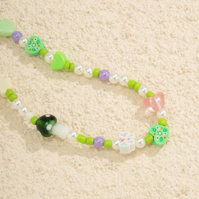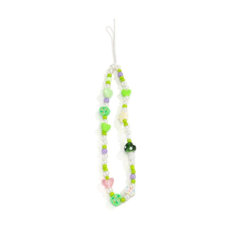 Lanière de téléphone / bracelet avec perles en forme de champignon - 20cm - Vert