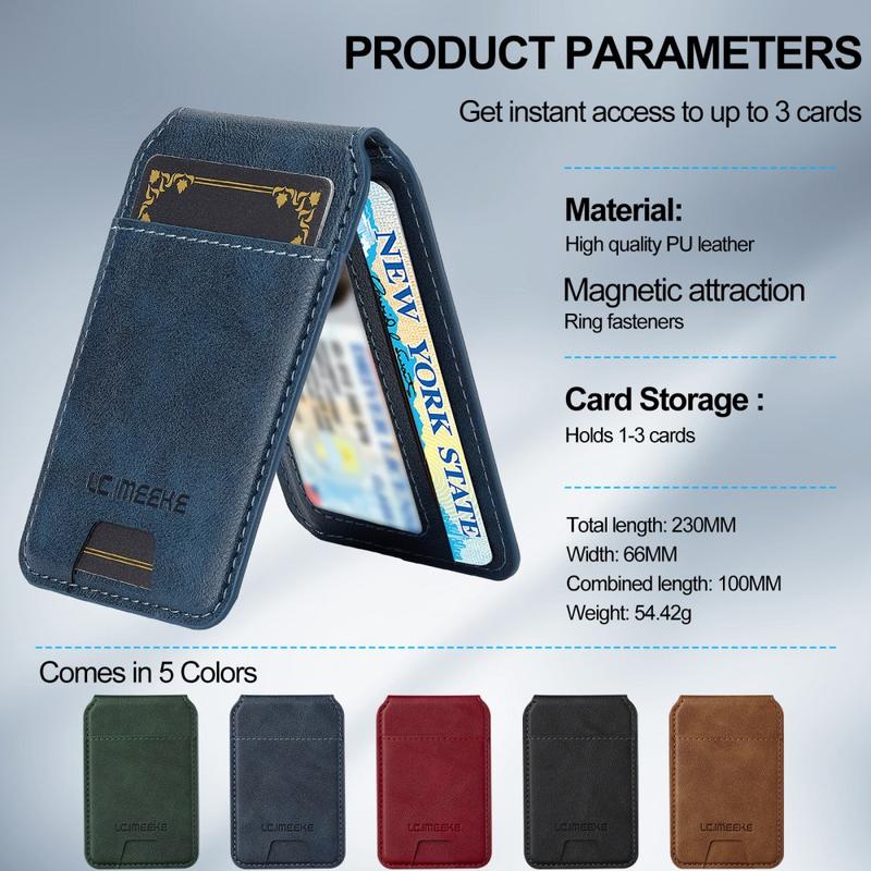 Le porte-cartes magnétique LC.IMEEKE est un accessoire de téléphone fin et élégant qui associe le stockage sécurisé des cartes à la commodité quotidienne. Conçu pour s'attacher magnétiquement aux téléphones compatibles, il garde vos cartes essentielles à portée de main tout en conservant un profil léger. Doté d'une béquille réglable pour une utilisation mains libres et d'une protection RFID intégrée, ce portefeuille est idéal pour une utilisation quotidienne, que vous soyez dans les transports, en voyage ou à la maison.