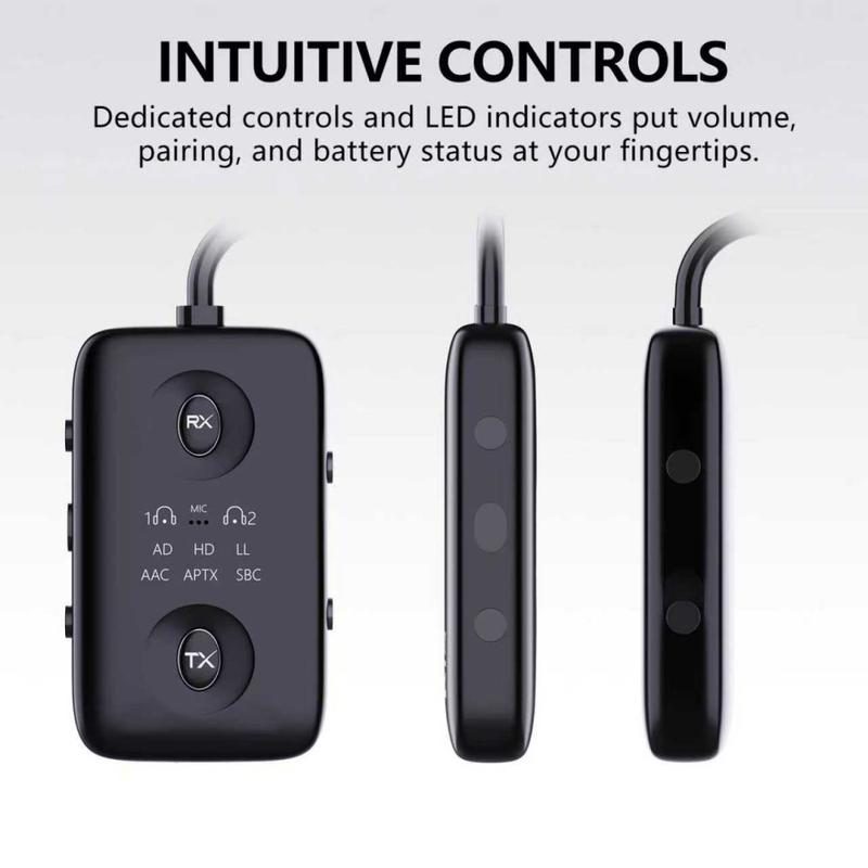 LE519 Récepteur et émetteur Bluetooth 5.4 - Adaptateur audio 3,5 mm pour avion, voiture, TV et divertissement à domicile, double appairage