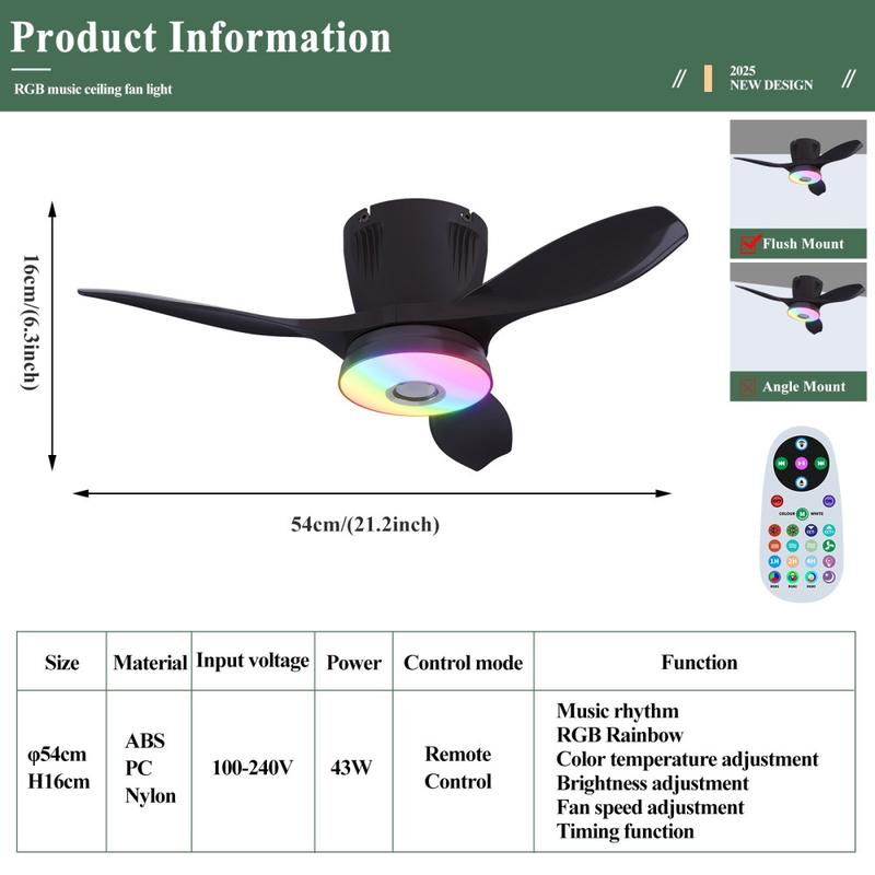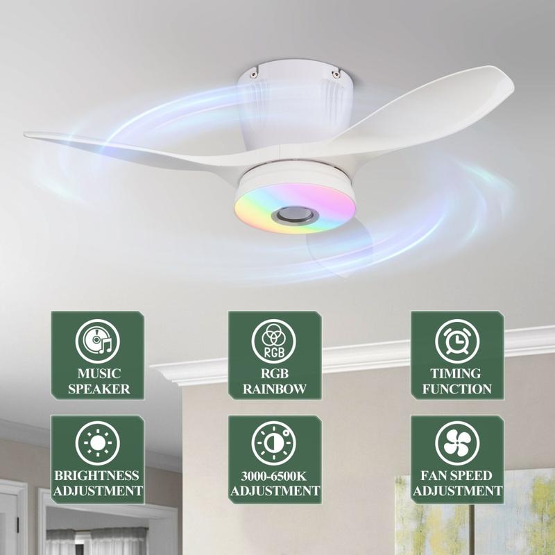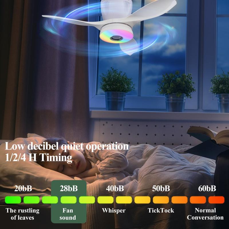 Ventilateur de plafond LEC016R - Ambiance RVB, flux d'air silencieux et haut-parleur Bluetooth intégré