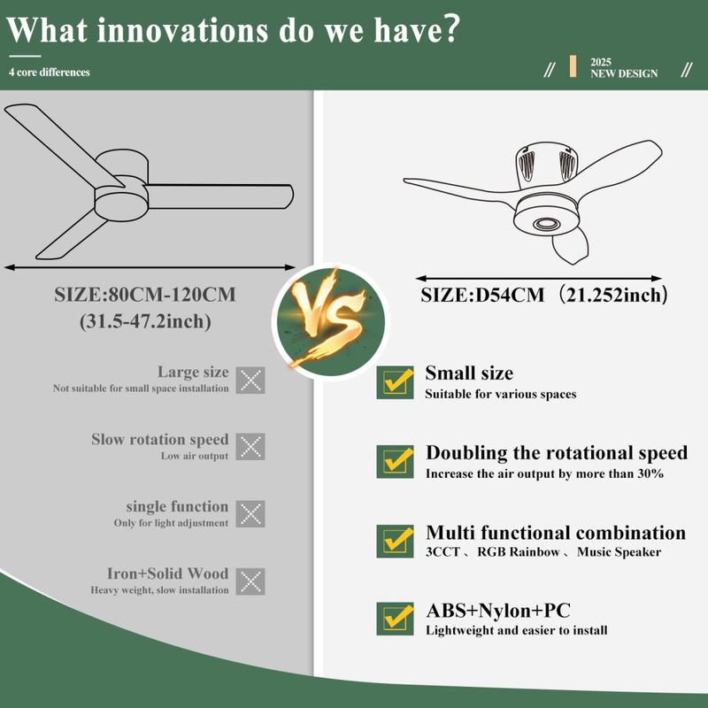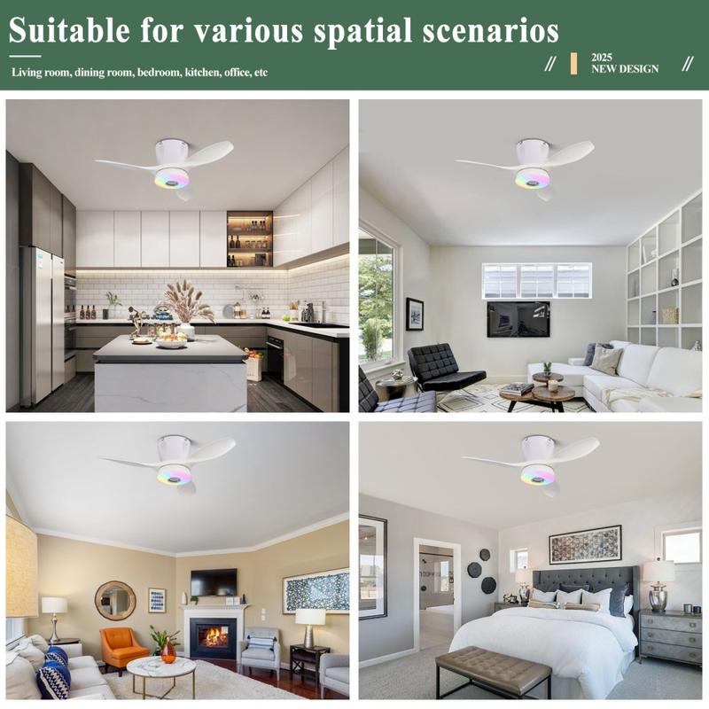 Remplacez l'encombrement par le style : cet élégant plafonnier de 54 cm combine un ventilateur sans balai à 3 vitesses, des LED à couleurs changeantes et un haut-parleur Bluetooth de 3 W dans un disque minimaliste qui rafraîchit, éclaire et divertit tout à la fois. Il s'installe comme une lampe standard tout en offrant une lumière blanche entièrement réglable, des effets RVB éclatants et une brise silencieuse contrôlée à partir d'une fine télécommande.