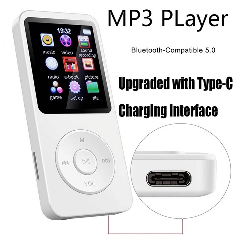 L'écran de 1.8 pouce vous permet de parcourir facilement les pistes et les paramètres, et le Bluetooth 5.0 vous permet de vous connecter à des écouteurs ou des haut-parleurs sans fil compatibles pour une écoute sans câble. Le stockage est également flexible : une carte TF de 64 Go est incluse et le lecteur prend en charge une extension TF jusqu'à 128 Go, ce qui vous offre beaucoup d'espace pour vos chansons, livres audio et fichiers. Rechargez-le via une entrée 5V/1A et recommencez à écouter rapidement grâce à un temps de charge d'environ 2 heures.