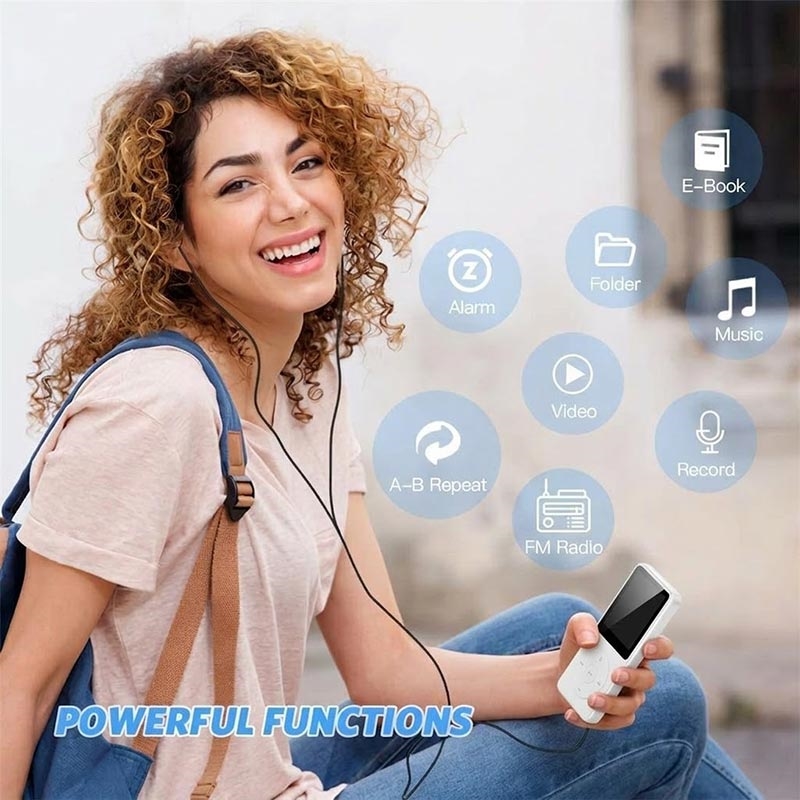 Gardez votre musique et vos fichiers multimédias dans votre poche grâce au lecteur MP4 portable T1. Compact et léger, il est conçu pour une écoute quotidienne et prend en charge plusieurs formats audio, notamment APE et FLAC, pour une lecture sans perte. Au-delà de la musique, il permet également la lecture de vidéos, la réception de la radio FM, la lecture de livres électroniques et l'enregistrement vocal, ce qui en fait un appareil de divertissement tout-en-un pratique pour les trajets quotidiens, les voyages, les séances d'entraînement ou les études.