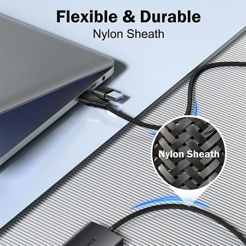 L'adaptateur est doté d'un câble tressé en nylon qui résiste à l'enchevêtrement et à la traction, améliorant ainsi sa durabilité au fil du temps. Le corps compact de l'adaptateur et la longueur du câble de 60 cm permettent de le transporter facilement dans une sacoche d'ordinateur portable ou un sac à dos.