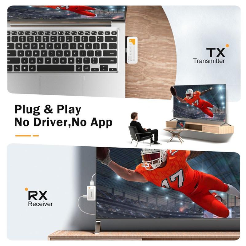 L'émetteur USB-C ne nécessite aucune installation de pilote supplémentaire ni aucune configuration complexe. Il suffit de connecter l'émetteur et le récepteur, et le système est prêt à être utilisé en quelques secondes, ce qui le rend idéal pour les environnements professionnels et sensibles au facteur temps.