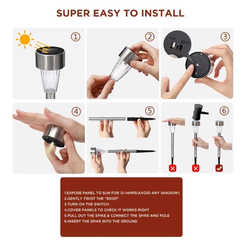 • L'extérieur Décoratif Étanche Anti-Déformation Acier Inoxydable Lumières Solaires les plus brillantes - 12 pièces