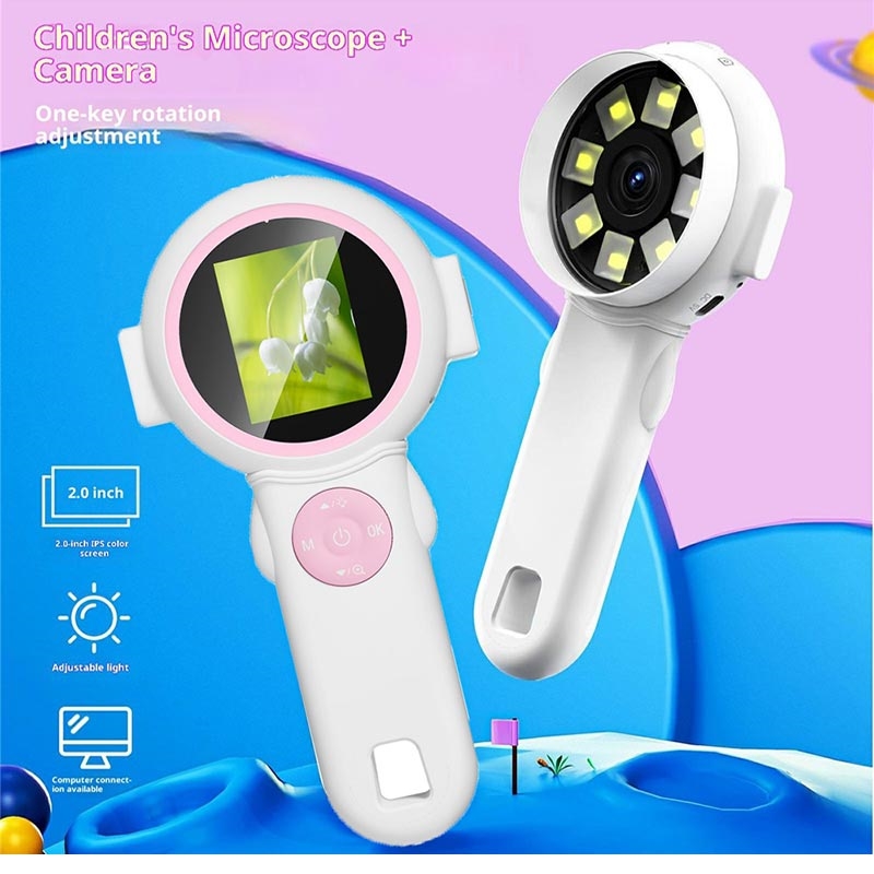 Le microscope numérique pour enfants HM020J offre deux modes passionnants en un seul appareil. Une simple rotation d'une touche permet de basculer entre le mode microscope pour l'observation de près et le mode appareil photo pour la capture d'images - parfait pour les jeunes explorateurs, les étudiants et les esprits curieux.