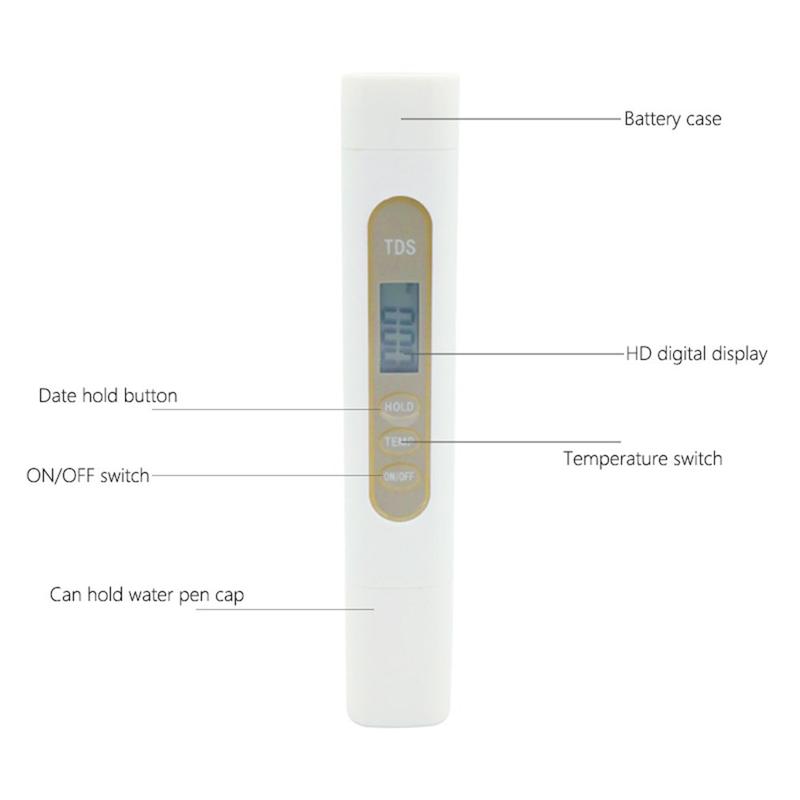 - Double mode de mesure - affichage du TDS et de la température (0-99°C)