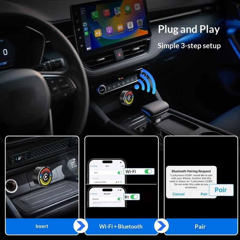 L'adaptateur voiture sans fil M47 met à niveau le système CarPlay ou Android Auto câblé de votre véhicule pour une connexion sans fil pratique. Il suffit de le brancher sur le port USB de votre voiture pour bénéficier d'un appairage automatique à chaque fois que vous démarrez le moteur. Grâce à ses performances sans fil rapides et à son design compact, il permet de garder votre tableau de bord propre tout en conservant l'intégralité des fonctionnalités CarPlay et Android Auto.
