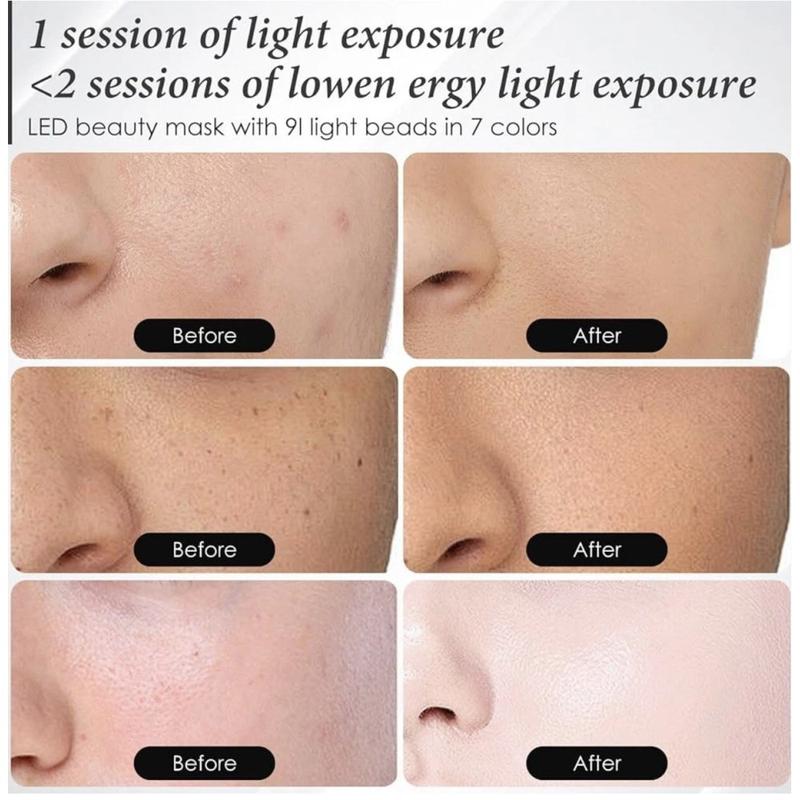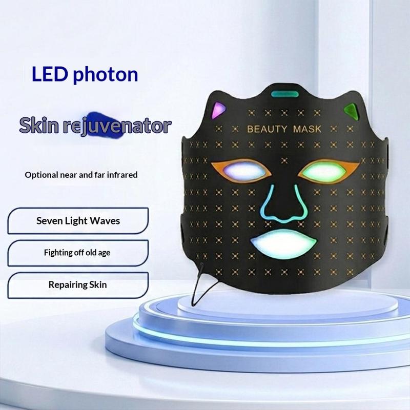 SP-1103A Masque facial de luminothérapie LED 7 couleurs - Masque de soin de la peau sans fil en silicone à photons avec contrôleur numérique