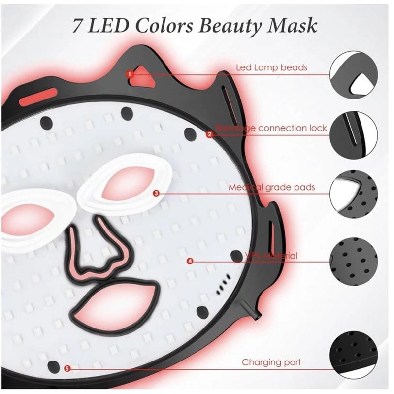 - Masque facial de luminothérapie LED 7 couleurs