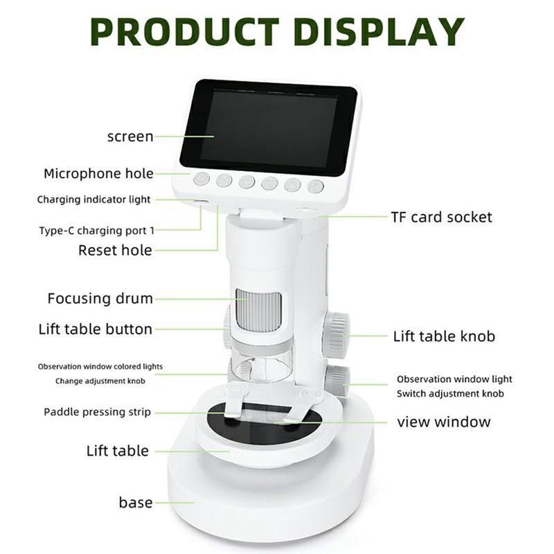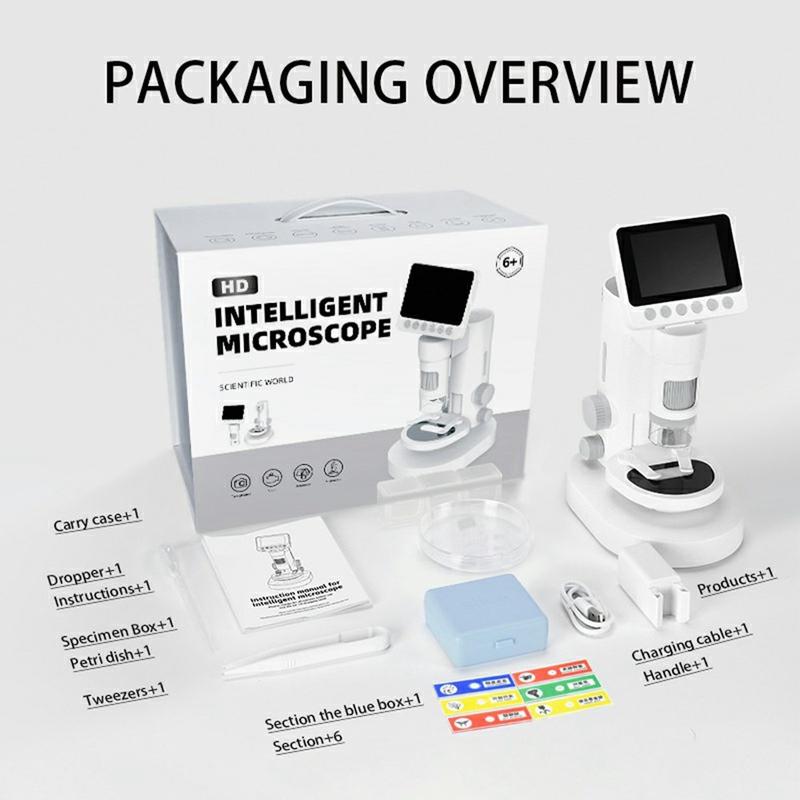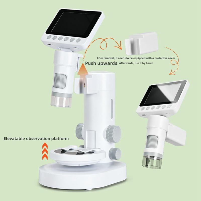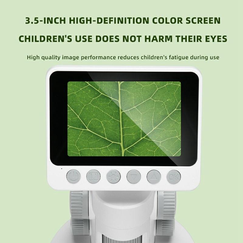 Microscope numérique pour enfants 1000X / 2-en-1 Microscope de poche et de bureau avec écran HD de 3,5 pouces et jeu de lamelles