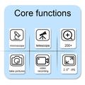 - Fonctions : Prise de photos, enregistrement vidéo, microscopie
