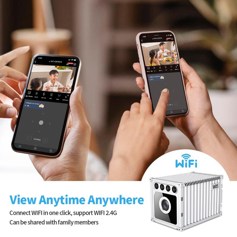• Mini caméra de sécurité d'intérieur W05 1080p avec Wi-Fi, vision nocturne, détection de mouvement et surveillance via application