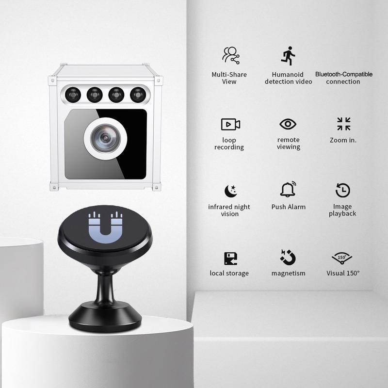 - Caméra de sécurité WiFi d'intérieur compacte avec support magnétique pour un placement flexible