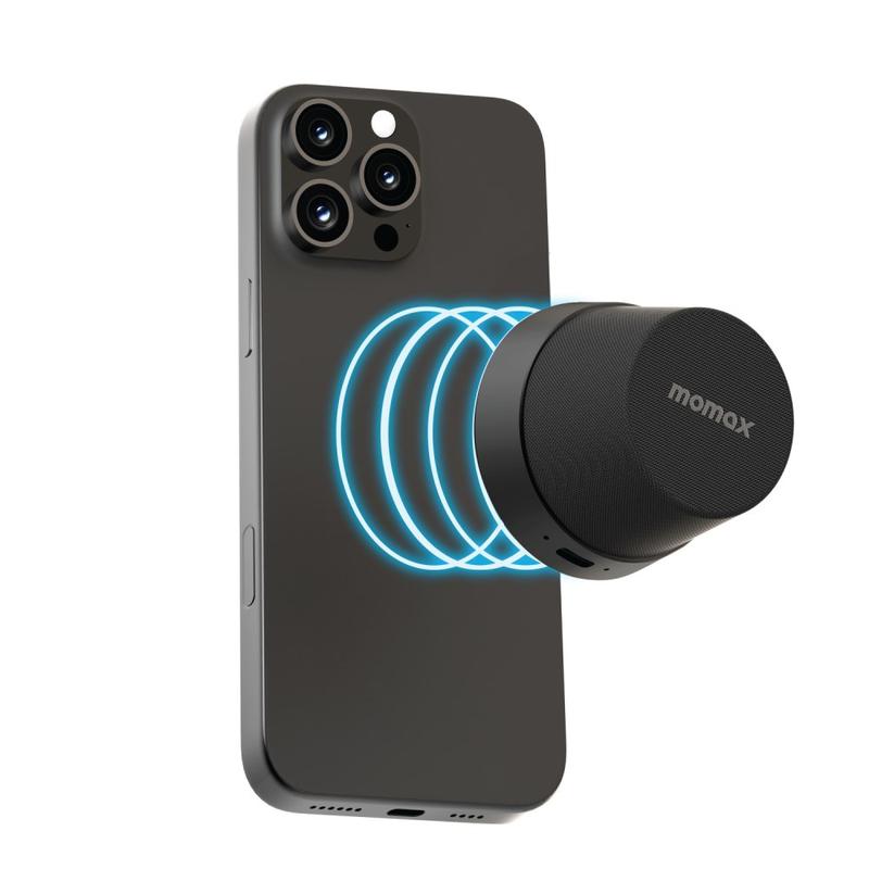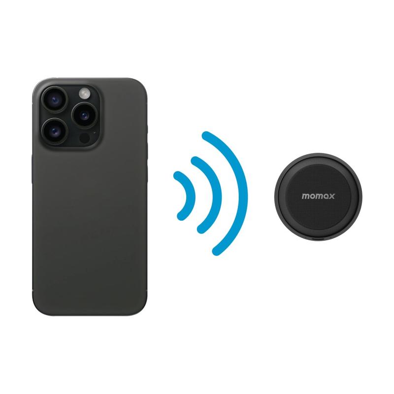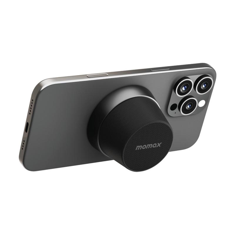 Mini haut-parleur Bluetooth magnétique et support pour téléphone Momax 1-Vibe Go BS6, son à 360° et étanchéité IPX6