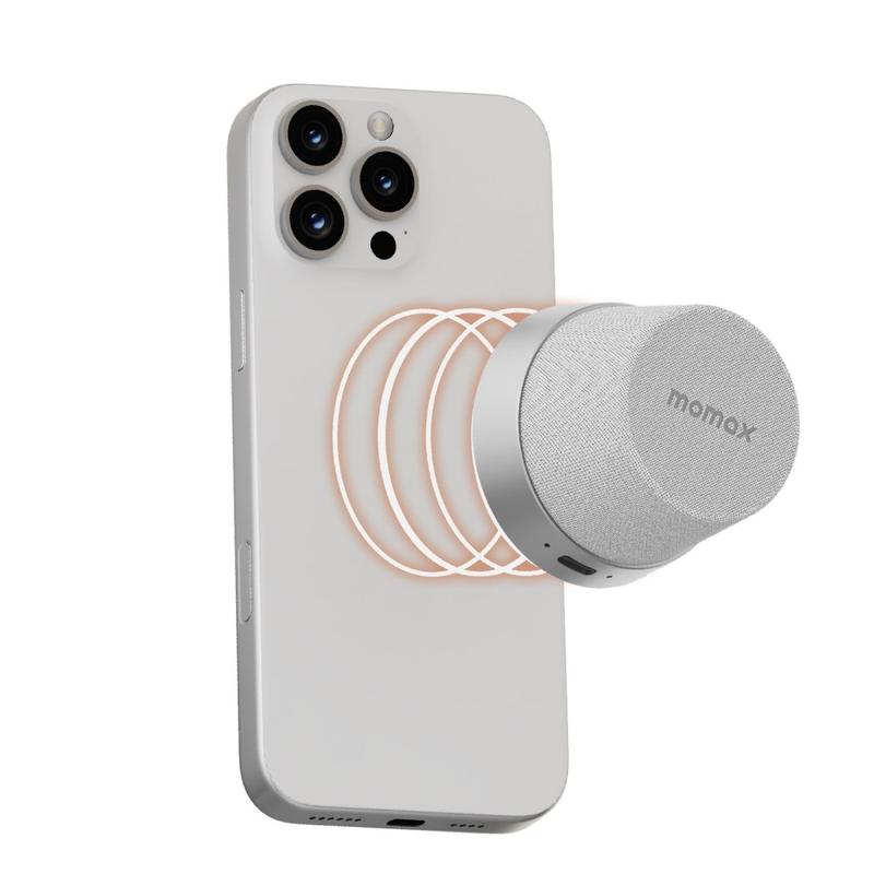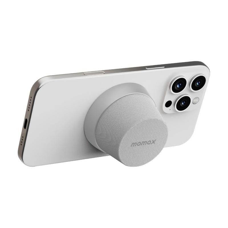 Mini haut-parleur Bluetooth magnétique et support pour téléphone Momax 1-Vibe Go BS6, son à 360° et étanchéité IPX6