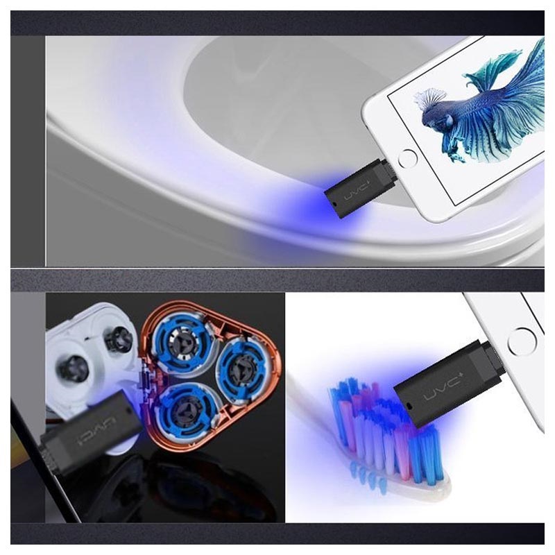 Even when you clean your gadgets, home & office environment, baby toys, chairs, tables, etc. bacteria or viruses are still there, so the mini Lightning UVC sterilizer is a perfect choice. The Lightning sterilizer uses UVC (ultraviolet) light to kill up to 99.9% of bacteria and viruses in 5 seconds. Simply to use, plug it to your iPhone or iPad with a Lightning connector and start to disinfect.