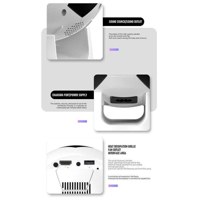Le mini-projecteur YT600 au design footballistique associe un divertissement intelligent à un format ludique et compact. Alimenté par Android 13.0, il vous donne un accès instantané aux applications de streaming les plus populaires sans avoir besoin d'appareils externes. Avec une résolution HD, des performances fluides et une connectivité sans fil moderne, il s'agit d'un projecteur polyvalent pour le home cinéma, les soirées sportives, les jeux ou une utilisation occasionnelle en extérieur.