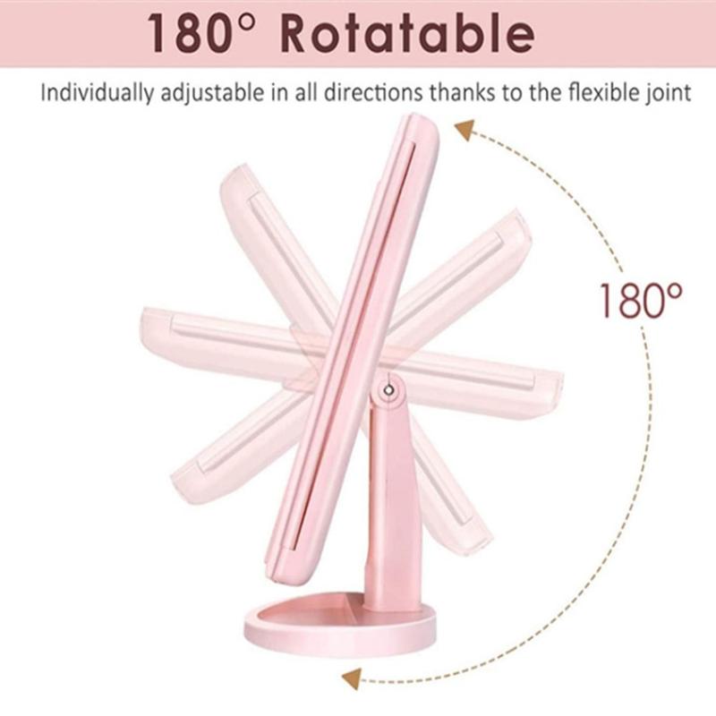 Le miroir de maquillage LED pliable sur 3 côtés associe un design élégant à des fonctions pratiques telles que la luminosité réglable et les grossissements multiples. Sa forme compacte et pliable en fait à la fois un bel accessoire de coiffure et un compagnon de voyage pratique.