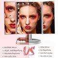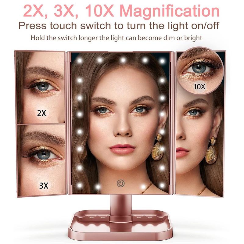 Miroir de maquillage pliable sur 3 côtés avec 22 lumières LED - Miroir de courtoisie grossissant 1X/2X/3X/10X