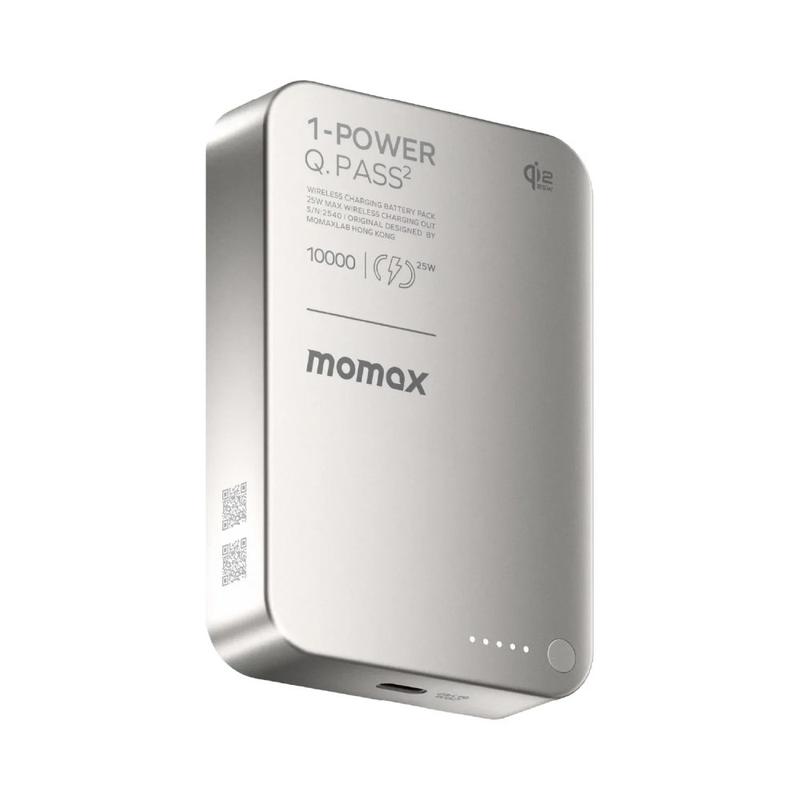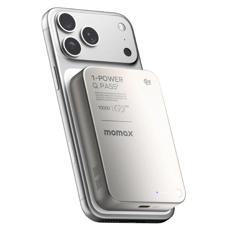 Momax 1-Power Q.Pass2 Qi2.2 25W Banque d'alimentation sans fil magnétique 10000mAh - USB-C PD 30W, Snap-On Charging pour iPhone 12-17 Series
