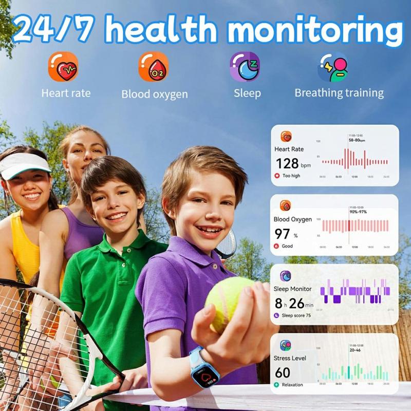 Montre connectée HT40 pour enfants avec moniteur cardiaque, suivi du sommeil, lecteur d'histoires et lampe torche - IP68, utilisation autonome