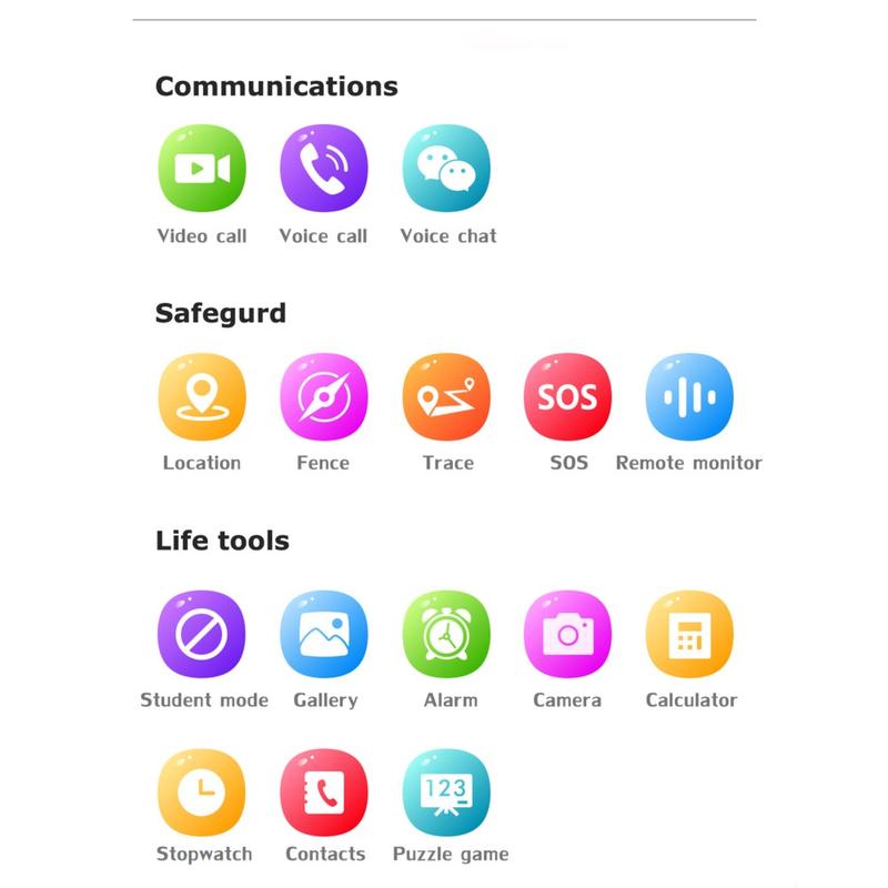 L'écran tactile IPS de 1,4 pouce offre un affichage clair et coloré, tandis que la combinaison du GPS, du Wi-Fi et de la localisation LBS permet une localisation plus précise. Grâce à la prise en charge des appels vocaux, des appels vidéo, de la surveillance à distance et de l'accès à Internet via Wi-Fi et 4G, la montre aide les enfants à rester connectés tout au long de la journée. Le podomètre intégré encourage également des habitudes quotidiennes plus actives, et le bracelet en silicone souple de qualité alimentaire est conçu pour un port quotidien confortable.