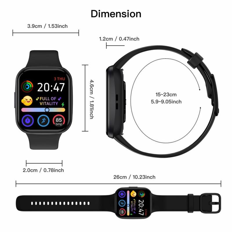 La montre connectée Q23Pro offre un grand écran couleur de 1.83 pouce, des performances fluides et un suivi fiable de la santé et de la forme physique pour une utilisation quotidienne. Conçue avec un boîtier intégré fin et un verre incurvé en 3D, elle prend en charge les appels Bluetooth, le contrôle de la musique et plus de 100 cadrans personnalisables. Avec une longue autonomie, un suivi complet de la santé et une large compatibilité avec Android et iOS, c'est une montre connectée pratique pour rester connecté et actif.