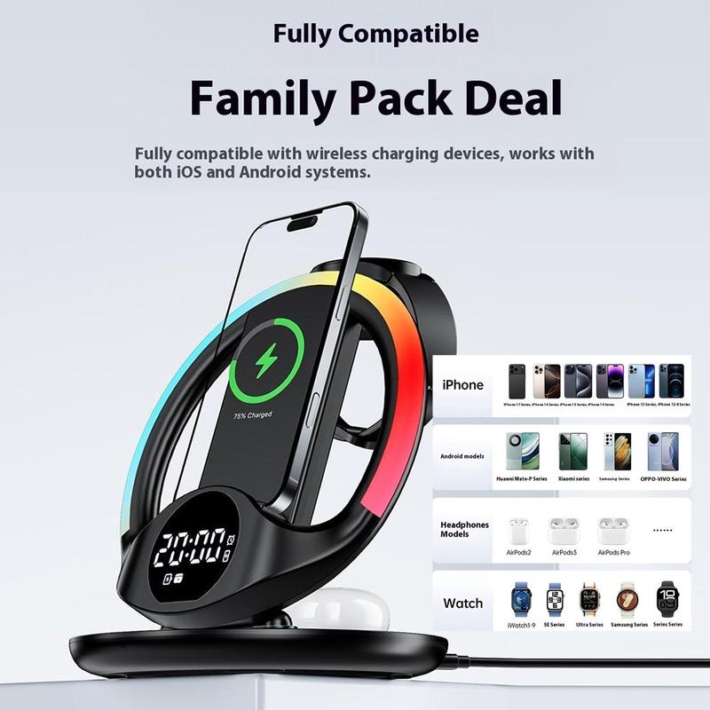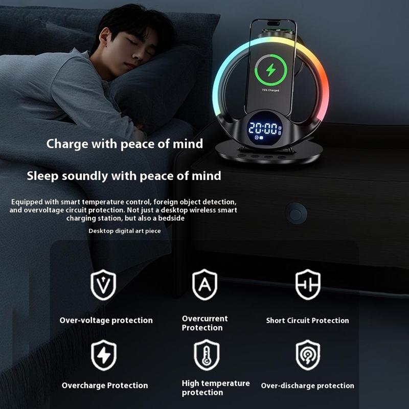 Alimentez tous vos appareils essentiels avec la station de charge sans fil 6-en-1 N01, le hub de charge tout-en-un ultime pour les smartphones, les smartwatches et les oreillettes. Conçue pour les utilisateurs Apple et Samsung, elle allie fonctionnalité, style et sécurité dans une station compacte, idéale pour les bureaux, les tables de chevet ou les bureaux.