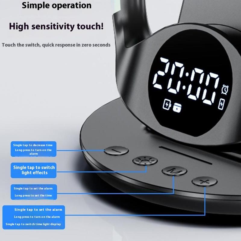 • Station de charge sans fil 6 en 1 N01 / Support de charge magnétique rapide avec réveil, contrôle intelligent de la température et veilleuse