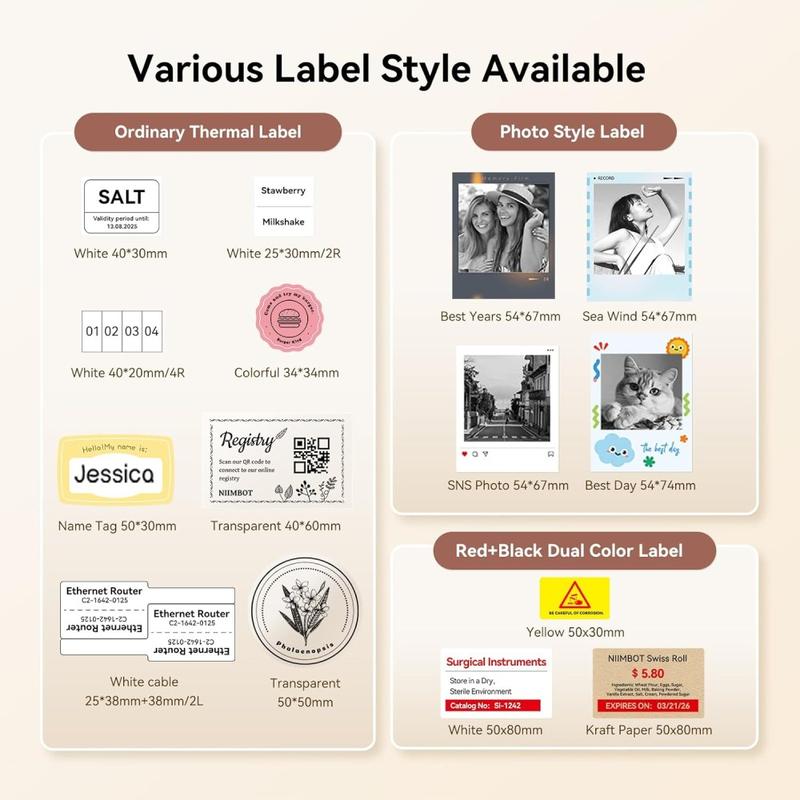 Niimbot B21 Pro Imprimante d'étiquettes intelligente - 300DPI - Beige