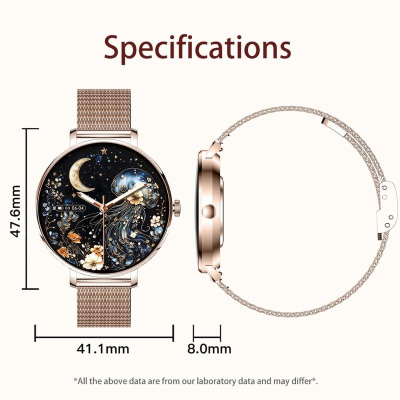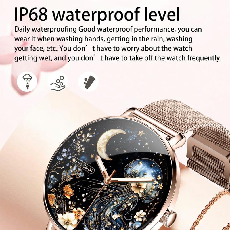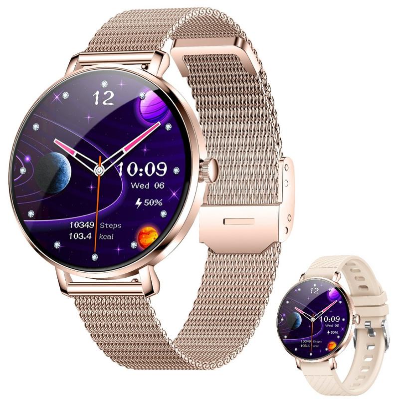 NX21 Montre intelligente pour femmes avec surveillance de la santé - Bluetooth 5.3 et IP68 - Or