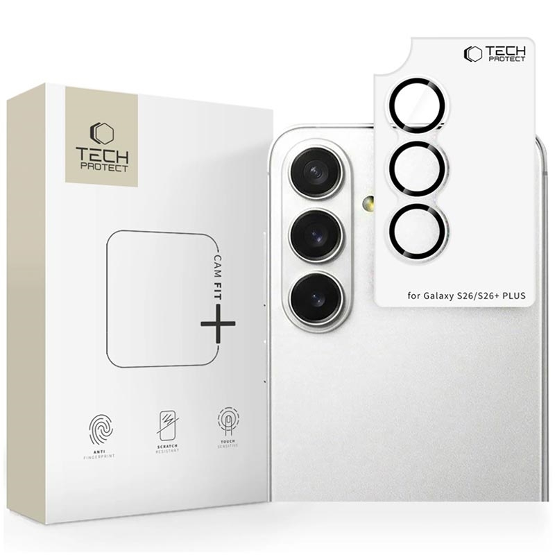 Objectif de caméra Tech-Protect Camring Fit+ pour Samsung Galaxy S26, Galaxy S26+ - Kit de protection de l'objectif en aluminium et en verre