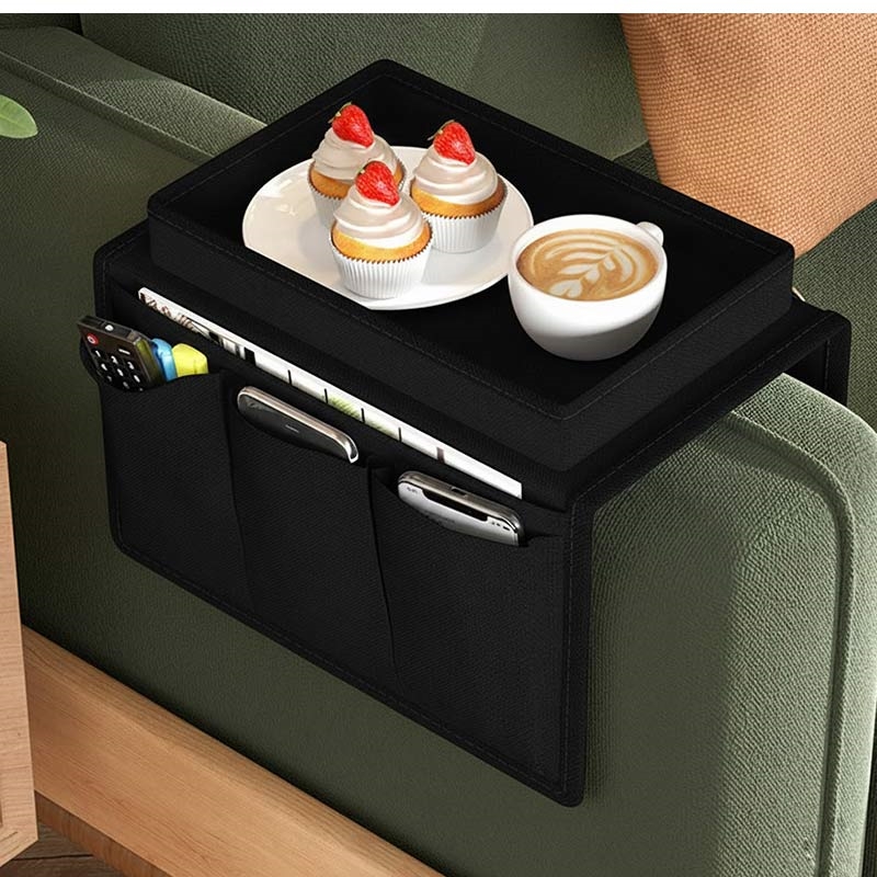 Organisateur d'accoudoir de canapé peu encombrant avec poches multiples - Noir