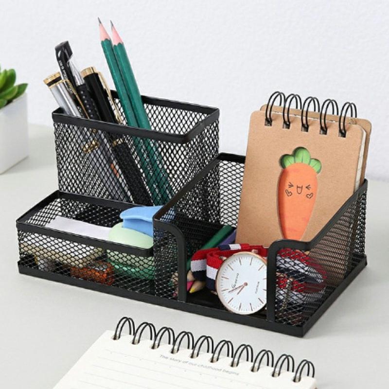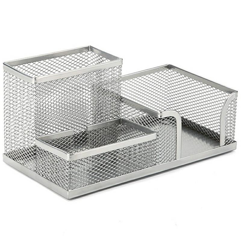 Organisateur de bureau en maille métallique à 3 compartiments - Espace de travail ordonné, style instantané
