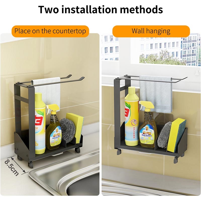 Fabriqué en aluminium et en acier au carbone durables, l'organisateur offre une stabilité à long terme et une résistance à l'usure quotidienne. Il ne nécessite aucune installation : il suffit de le placer sur le comptoir ou de le suspendre selon les besoins. Sa structure compacte s'adapte à la plupart des éviers, ce qui en fait un complément idéal pour les cuisines, les éviers de service et les espaces de vie compacts.