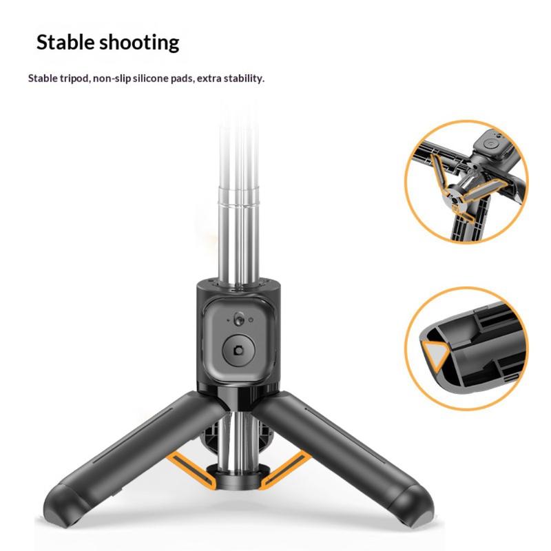 - Bâton de selfie, mini trépied et lampe de remplissage en un seul appareil.