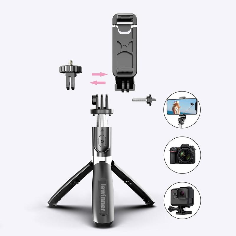 - Conception 2 en 1 : selfie stick + trépied pour des prises de vue stables