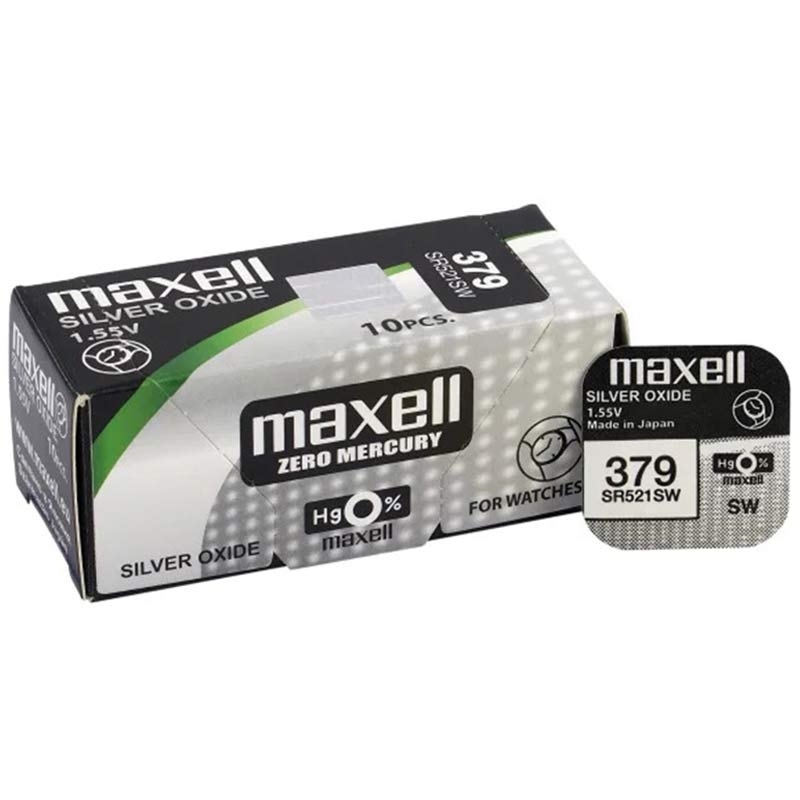 • Pile pour montre à l'oxyde d'argent Maxell 379 - Pile bouton 1,55 V SR521SW/AG0