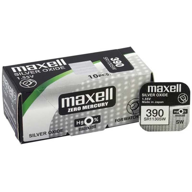 Pile d'oxydes d'argent Maxell 390/389 SR1130SW pour montre, 1.55V