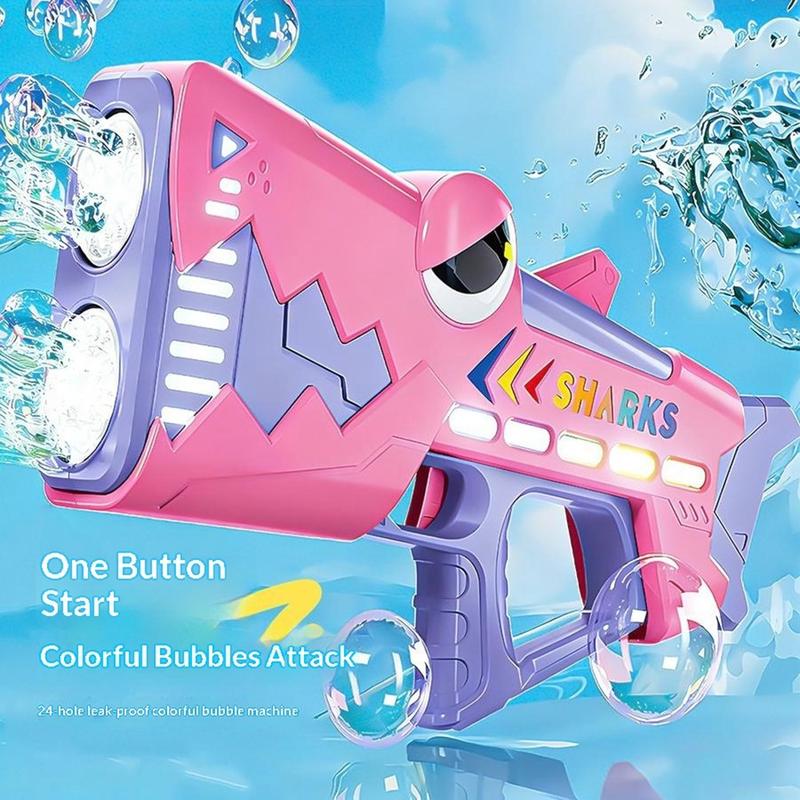 Pistolet à bulles automatique pour enfants en forme de requin - Machine à bulles automatique à 24 trous avec lumières LED, pistolet à bulles rechargeable par USB