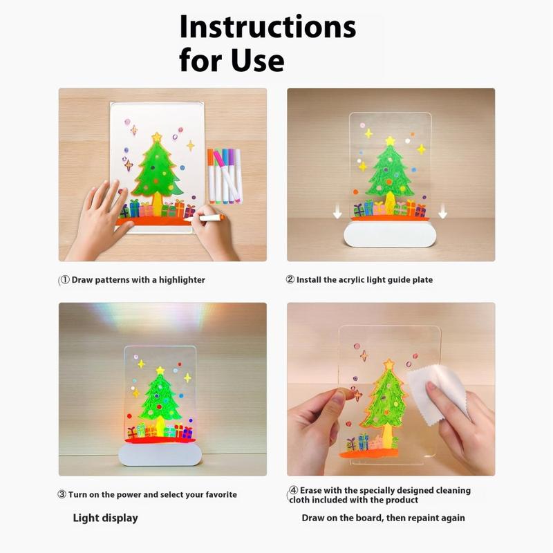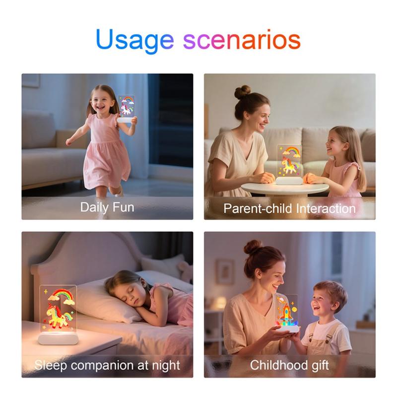 Planche à dessin LED rechargeable et effaçable avec 7 crayons de couleur - 3D Acrylic Drawing & Memo Night Light