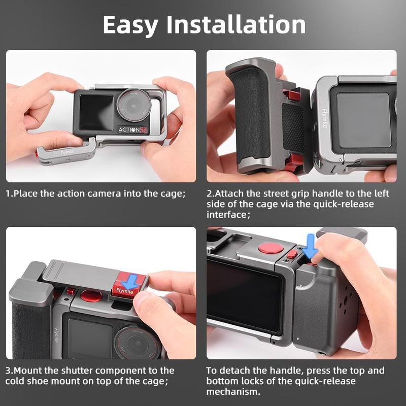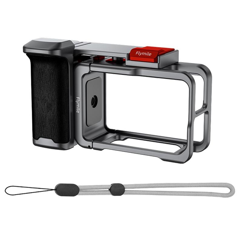 • Ensemble poignée et cage pour caméra d'action Flymile pour DJI Osmo Action 5 Pro/4/3 - Poignée avec bouton d'obturateur, griffe et dragonne